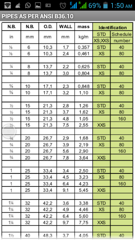 アプリケーションは、日常生活に存在日でパイプ、フランジ、継手寸法を扱う技術者のための非常に便利なツールです。以下に示すように、アプリは、多くの異なる標準および材料の種類の寸法を有するされています。