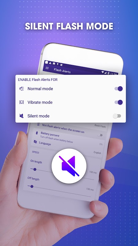 You can also get flash alerts during particular time as well and you have option to change the blinking frequency like if you want flash alerts to be slow or high. You will have control the phone mode from inside the app that is normal mode / silent mode / vibrate. You have option to set up blinking with ON/OFF in detail.