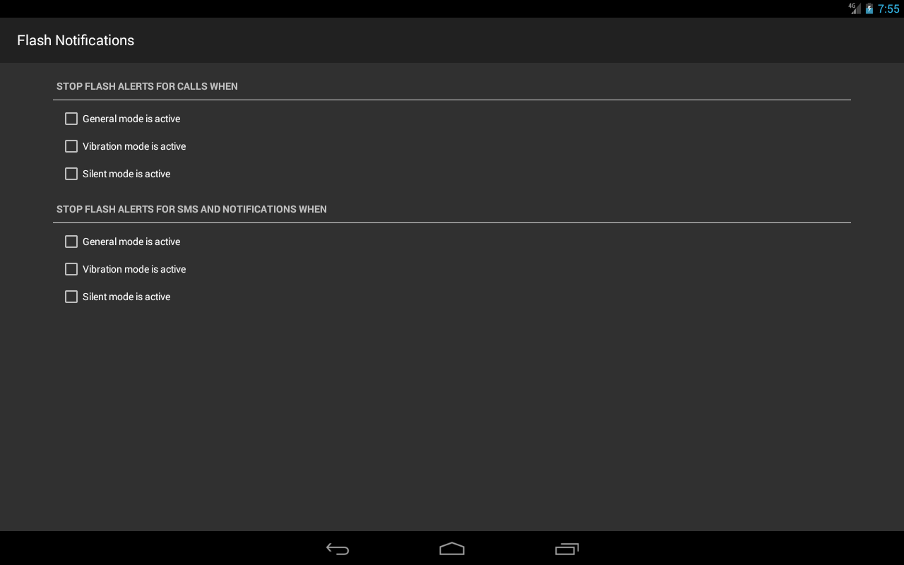 Receive alerts through the flash on your phone. flash on calls & notifications will use your camera flash to make light blinking signals during an Incoming call, SMS or any notifications.