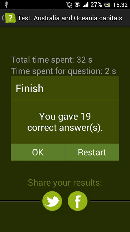 Also, the app allows to export any test and share it with the other users.