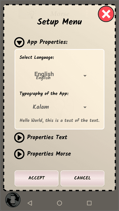 さらに、懐中電灯にはモールスコードオプションが組み込まれているので、テキストをモールスに変換することができます。このようにして、オーディオビープ音やLEDライトでモールスを再現することができます。