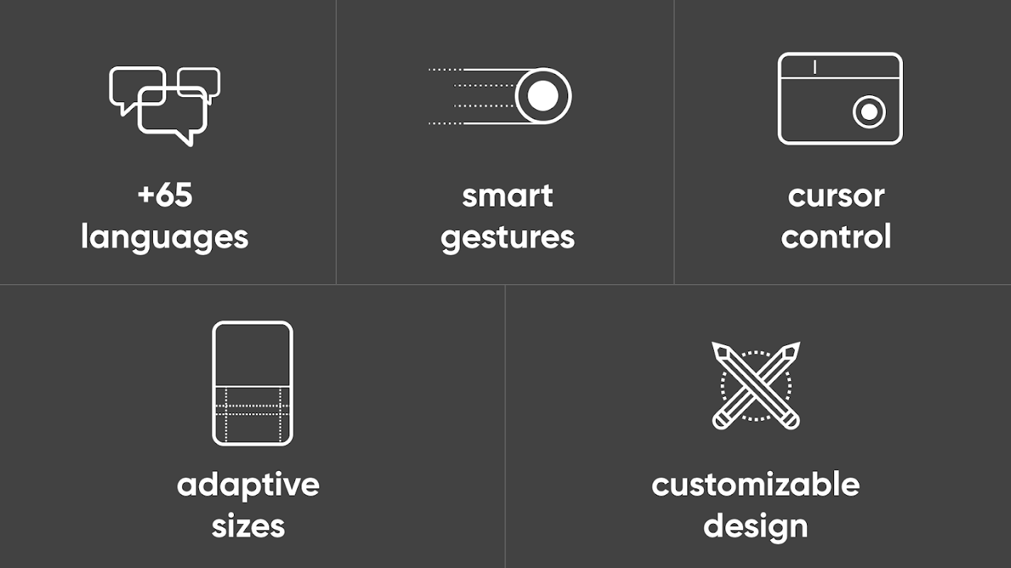 入力中に言語をシームレスに切り替えます。 Fleksy の多言語サポートは、QWERTY、AZERTY キーボード、DVORAK、QWERTZ および次のすべてのキーボード言語を含む80 以上のキーボード レイアウトと言語 をサポートしています: アフリカーンス語、アルバニア語、アラビア語、ベラルーシ語、ボスニア語、ブルガリア語、カタラ語、セブアノ語、クロアチア語、チェコ語、デンマーク語、オランダ語、英語 (米国、英国、カナダ、オーストラリア)、エスペラント語、エストニア語、フィンランド語、フランセ語、ドイツ語、ギリシャ語、ハウサ語、ヘブライ語、ハンガリー語、アイスランド語、インドネシア語、ジャワ語、イタリア語、カザフ語、ラトビア語、リトアニア語、マケドニア語、マレー語、ノルウェー語、パシュトゥー語、ペルシア語、ポーランド語、ポルトガル語 (ブラジル、ポルトガル)、ルーマニア語、ロシア語、セルビア語、スロバキア語、スロベニア語、ソマリ語、スペイン語 (米国、スペイン、アメリカ)、スワヒリ語、スウェーデン語、トルコ語、ウクライナ語、ウルドゥー語。 Teclat、klávesnice、klaviatuur、Tastatur、tasteera、klaviatura、کی بورڈ、teclado、клавиатура、tangentbor、لوحة المفاتيح、πληκτρολόγιο、papan kekunci、klawiatura 、тастатура、bàn phím、tuş takımı、klávesnica、കീബോർഡ്、מקלדת、näppäimistö、toetsenbord、клавиатура 、ティプコヴニツァ、クラバロ、クラヴィーア、パパン・ケティク、タスタチュラ、タスタチュラ、ティプコヴニコ、スルーテルボルド、クラヴィアトゥーラ、ビレンティシュゼット、キラウィエ、کیبورډ、kiiboodhka、صفحه کلید、lyklaborð、კლ ავიატურა、teklatua、клавіятура、kibodi、klaviatura、ãſťťŶšŷšր、tastatura