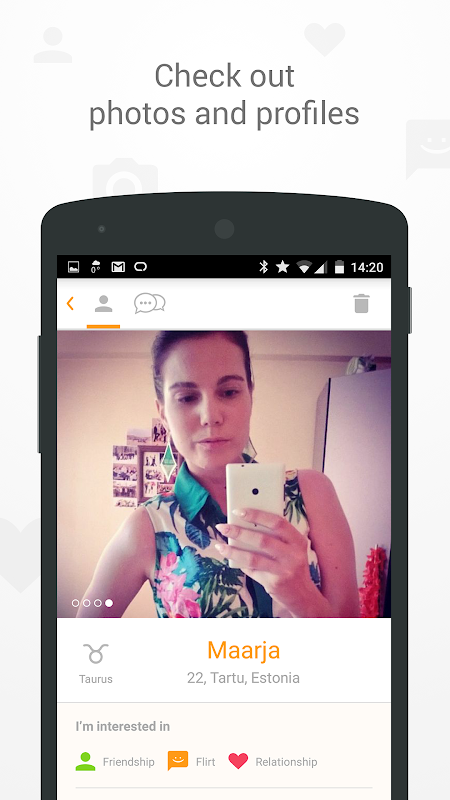 Once two of you have matched, you’ll be able to start chatting. Don’t know what to write first? Just shake your phone and we’ll suggest you a funny pick-up line.
