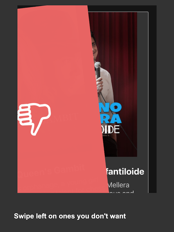 好きな映画を右にスワイプし、嫌いな映画を左にスワイプして、接続して楽しんでください!