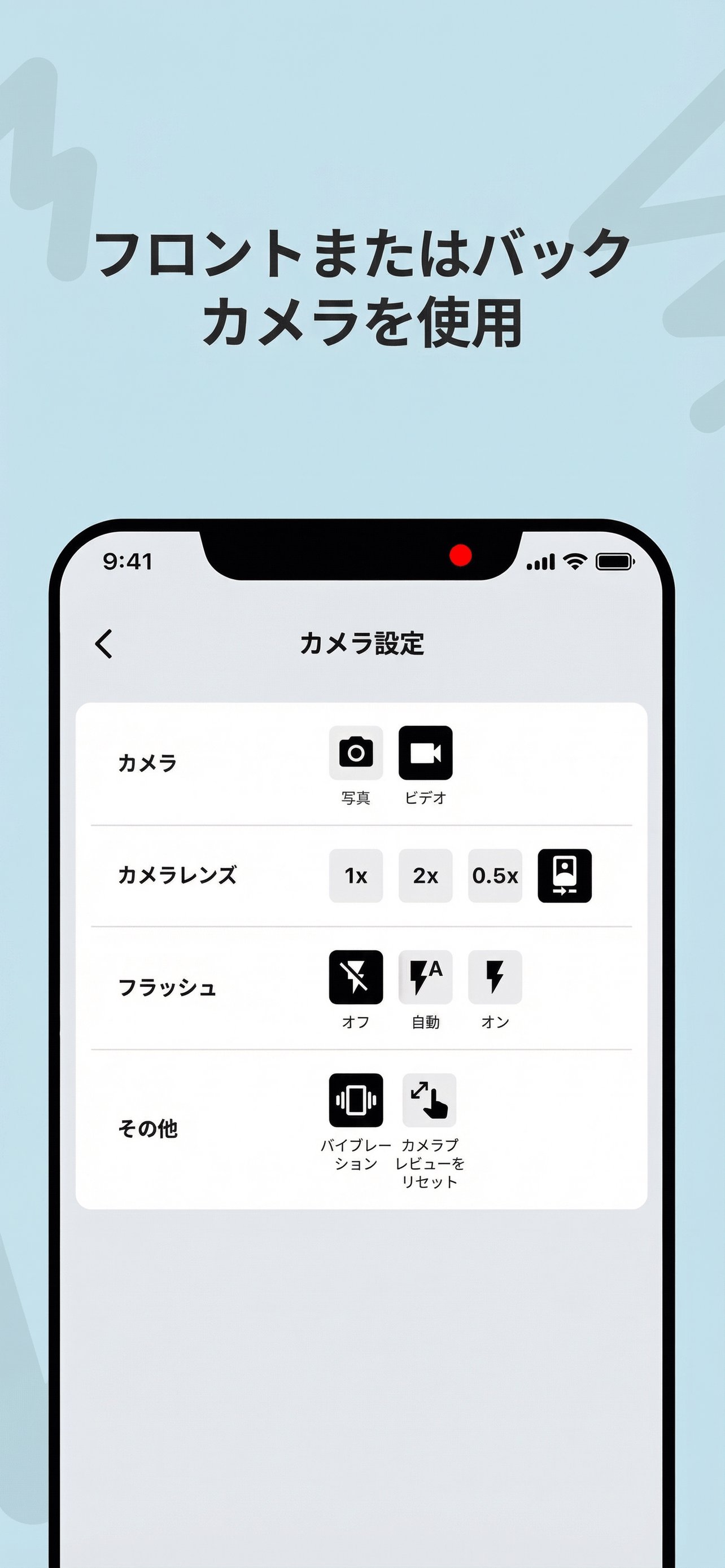• 🎬 バックグラウンドカメラ録画: 他のコンテンツを表示したままビデオを録画します。