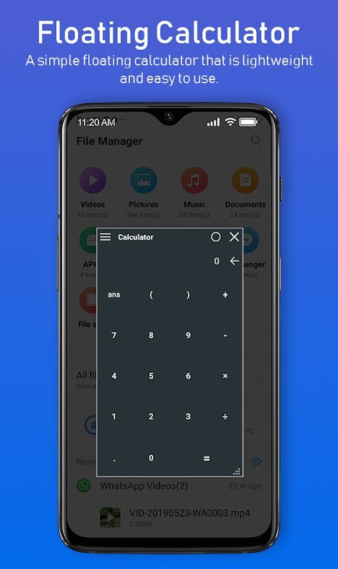 Once open you can move around your device and open or close other applications where you can use the calculator.