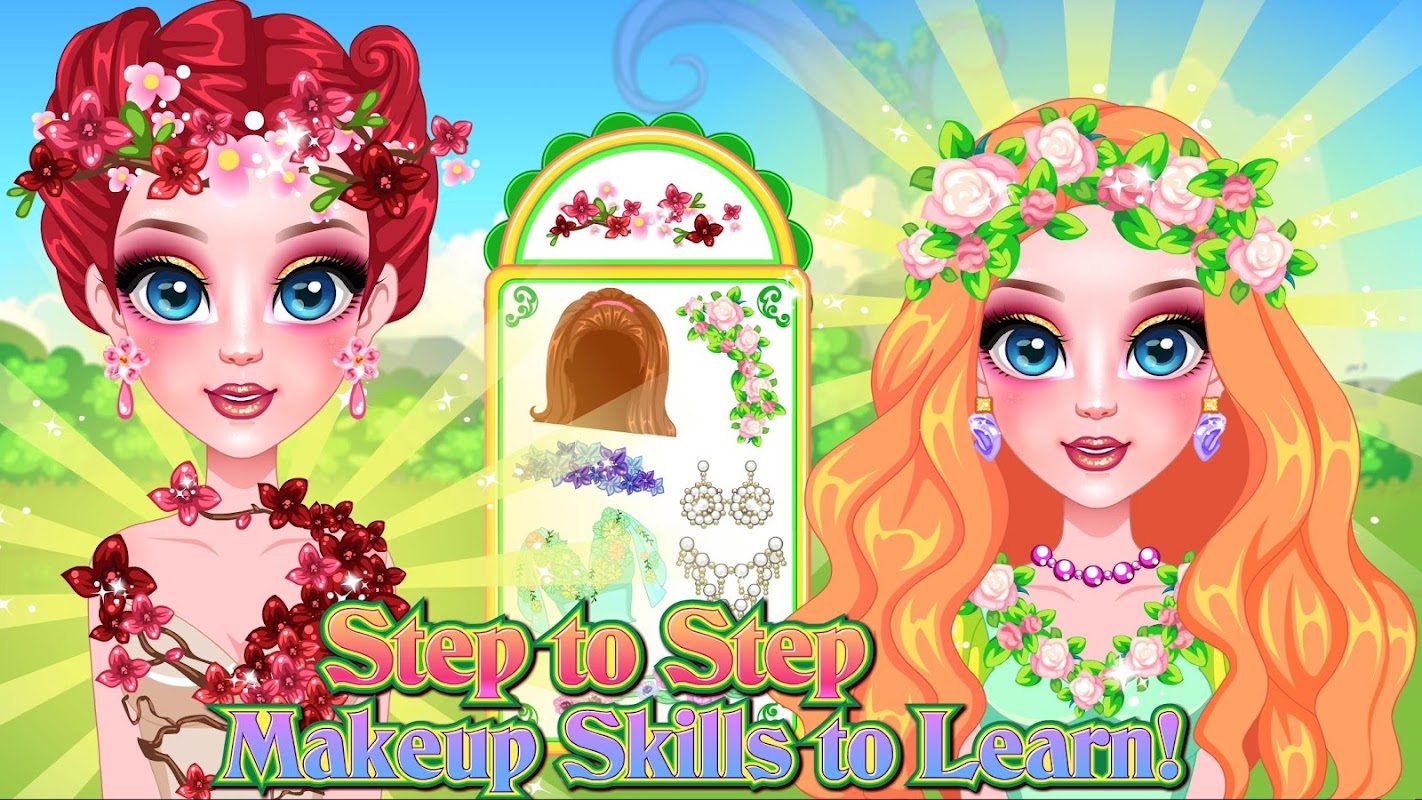 This new game we feature is actually a cool makeup tutorial! Start this game and learn step by step how to create a beautiful flower fairy makeup look. Start with foundation and base. The most important part is the eye makeup. Try to blend the colors and make your eyes pop. After the makeup is finished, select a fairy godness dress with flowers and match with gorgeous flower accessories. You are the most beautiful flower fairy! Have fun!