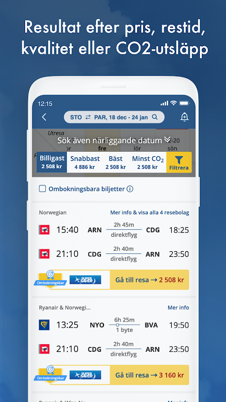 Flygresor.seは、フライトチケットのSwedens最も人気の価格比較です。