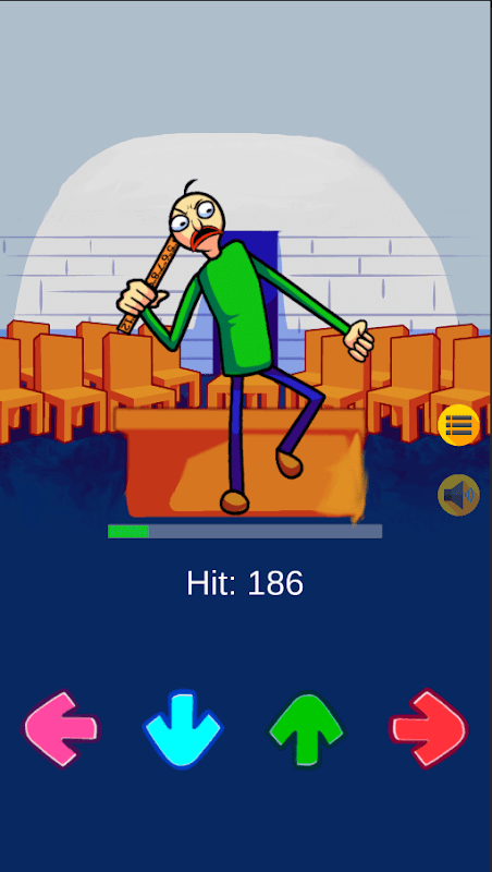 FNF Baldi Mod Testゲームで何をすべきですか?デバイスの画面上の矢印をクリックして、主人公と一緒に最高のポイントを獲得する必要があります!ゲームを開始する前に、最も気に入ったトラックとBaldiの状態を選択し、[再生]をクリックします。その後、FNFバルディテストキャラクターでは、主人公を操作するためのメインキャラクターと4本の矢印が画面に表示されます。矢印をクリックするとすぐに、キャラクターは特定の音符を歌い、特定の動きをします。バルディの声だけを聞きたい場合は、バックグラウンドミュージックをオフにすることができます。これを行うには、デバイスの画面にあるビープ音の形をしたボタンを押す必要があります。