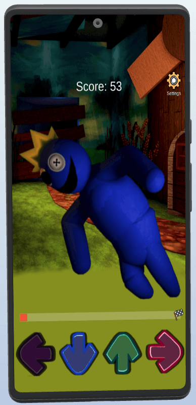 FNF Blue Rainbow friends Mod Test は、シンプルで直感的なコントロールを備えています。デバイスの画面上の矢印をクリックすると、Blue が動き、音を出します。 さらに楽しくするために、クリックするたびにポイントが付与され、バックグラウンドで音楽が鳴ります。 ちなみに、FNFレインボーフレンズ ブルーテストでは、音楽をオフにして主人公だけの声を聞くことができます。