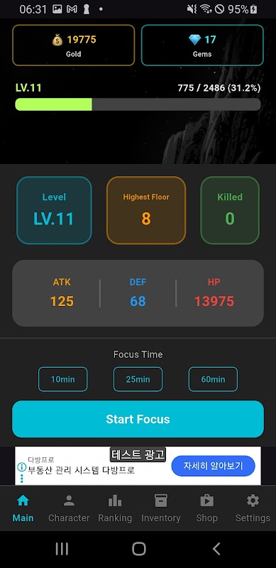 スマホを置いて、目標時間(10 分/25 分/120 分)に集中してください。その間、キャラクターはモンスターを狩り、経験値とゴールドを獲得します。