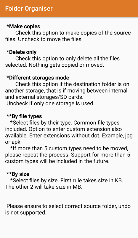 ファイルの種類やファイルサイズに応じて、別々のサブフォルダにファイルを整理。