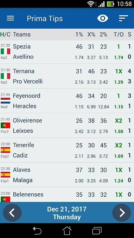 さらに、ホーム勝利の可能性が高い、または 1.5 ゴールを超えるなど、さまざまな基準で並べ替えることができます。このようにして、特定のカテゴリの上位の予測を確認し、最も適した予測を選択できます。