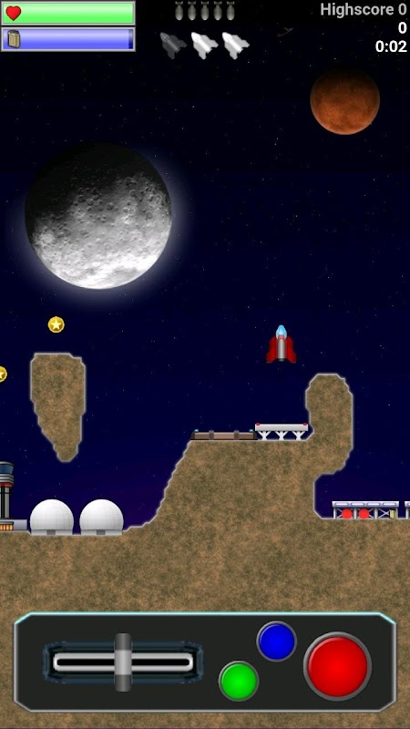 ゲームの簡単なレベルでは、様々なチャレンジが待ち受ける異星の風景に着陸船を着陸させます。難易度が上がるにつれて、燃料貯蔵所、貨物ゾーン、敵の施設、敵の防空システムなどが発見されます。これらの建物やその他の施設は、ゲーム後半のミッションの一部となります。