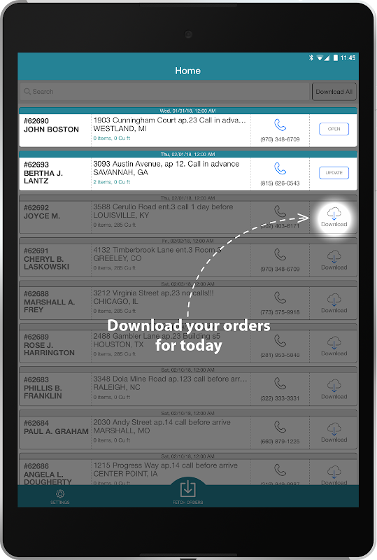ジョブをダウンロードし、すぐにリストを作成し、アイテムにその状態を追加し、既存の損傷の写真を撮り、バーコード ステッカーを簡単に作成します。