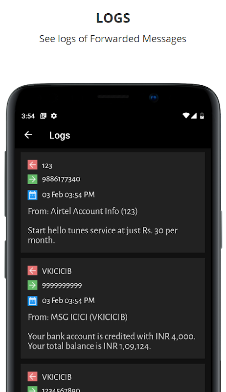 The app allows you to forward incoming SMS messages to any number in the world. You have the option to forward all the messages or some of them as per your needs. You can forward messages to multiple numbers also.