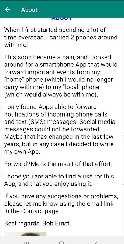 Forward2Me は、着信通話、テキスト (SMS)、WhatsApp メッセージなどの詳細を、あなたのメール アドレスに、および/またはテキスト (SMS) メッセージングを介して別の電話に送信します。