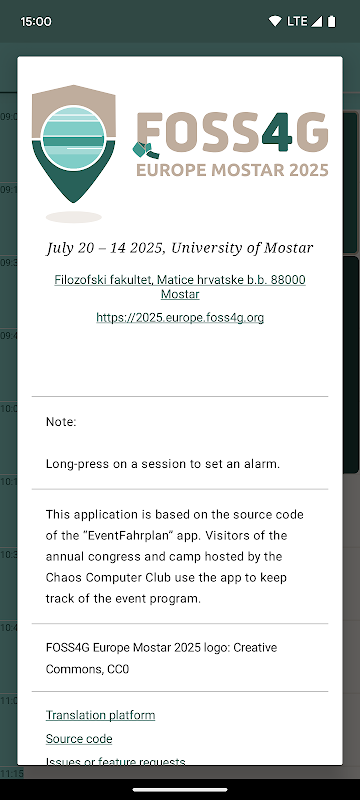 💡 コンテンツに関するご質問は、FOSS4Gカンファレンスのコンテンツチームのみが回答いたします。このアプリは、カンファレンスのスケジュールを閲覧し、カスタマイズするための手段を提供するものです。