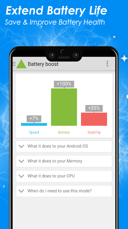 Battery Booster instantly kill power draining apps, stop background running processes to save battery power and extend battery life.