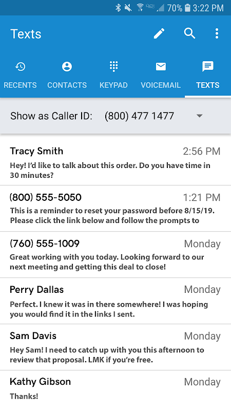 FreedomVoiceアプリであなたのAndroidデバイスを強力な会社の電話に変身させよう!この使いやすいビジネスアプリでは、Androidデバイスから直接電話システムを管理できます。あなたの会社の電話番号を発信者番号として提示し、外出先でメッセージをチェックしましょう。