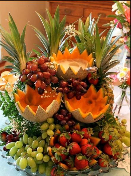 結婚式の装飾として作る非常に興味深い果物の飾り