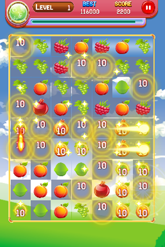 - ポイントを獲得するためにスワイプ3以上の同じフルーツ。"