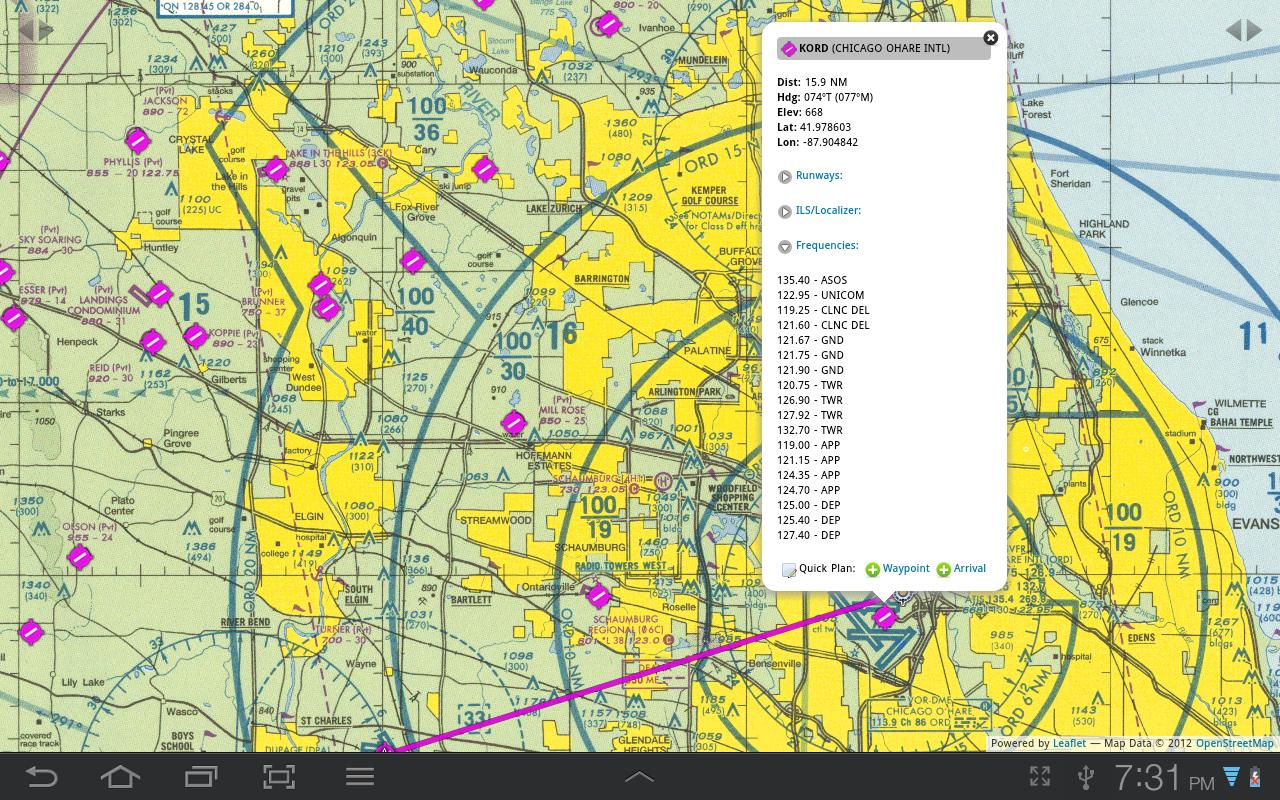 FSWidgets Cloud Based World Nav Data製品をお持ちの場合は、地図に表示されるアイコンのいずれかをタップして、空港、VOR、NDB、交差点などのウェイポイントとして追加することで、より高度なフライトプランを作成できます(KSFOエリアのデータは無料で含まれています)。このようにして作成された計画は、ナビゲーションデータから取得された空港とナビゲーション支援識別子(例:KSFO、OSI、LV、FABLA)。
