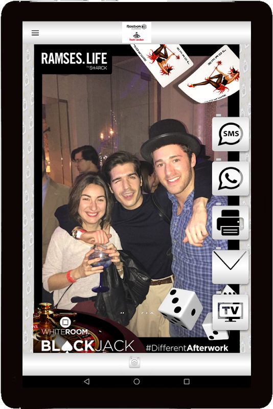 funEvent SHAREアプリを使用すると、ゲストは、WhatsApp(この機能を備えた世界初のソーシャル共有ステーション)、テキストメッセージ/ SMS、電子メール、印刷、テレビへのアップロードを介して、任意のフォトブースソフトウェアで撮影した写真やビデオを共有できます。リアルタイムスライドショーの画面。