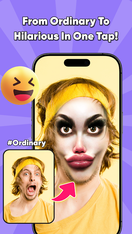 自分の自撮り写真を醜くて笑えるほどめちゃくちゃにしてみませんか? Funny Face アプリを使って、友達にいたずらしたり、変な顔でリラックスしたり、ばかばかしい楽しみを楽しんでください!この面白いカメラには、笑いを刺激する面白い顔フィルター、滑らかな顔のビデオ効果オプションが搭載されています。
