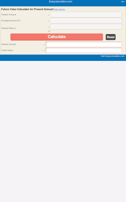 Obtain the future amount value of a present amount based on the interest rate and principal amount.