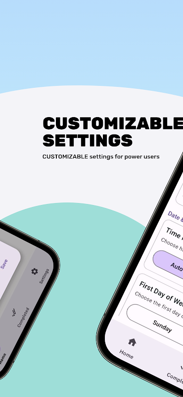 * カスタム設定 – 12時間/24時間形式、スヌーズ間隔のカスタマイズ、ライトテーマ/ダークテーマ、きめ細かな通知音を選択できます。