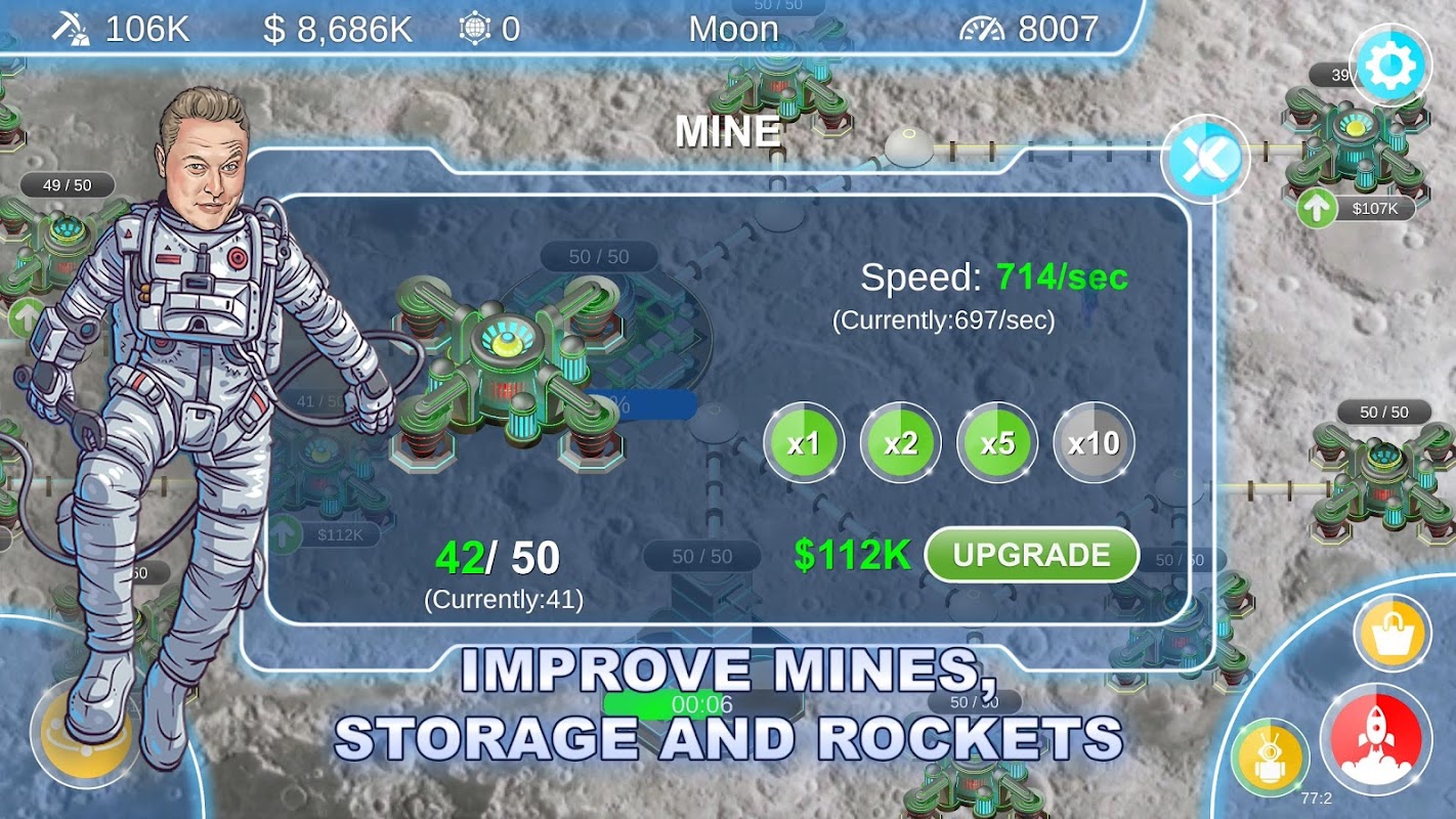 ✨ 鉱山、倉庫、ロケットの50レベルの改善