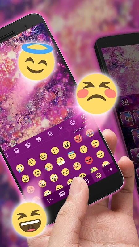 Galaxy Feather Keyboard Theme&Dream Feather Theme is eyecatching with the different hues of pink, and splashes of blue and green. Download the Galaxy Dream Feather keyboard NOW and bring fun to your texts on WhatsApp, Snapchat and Messenger! Make texting fun again with Facemoji on your Xiaomi, Opppo, Huawei- all Android phones!