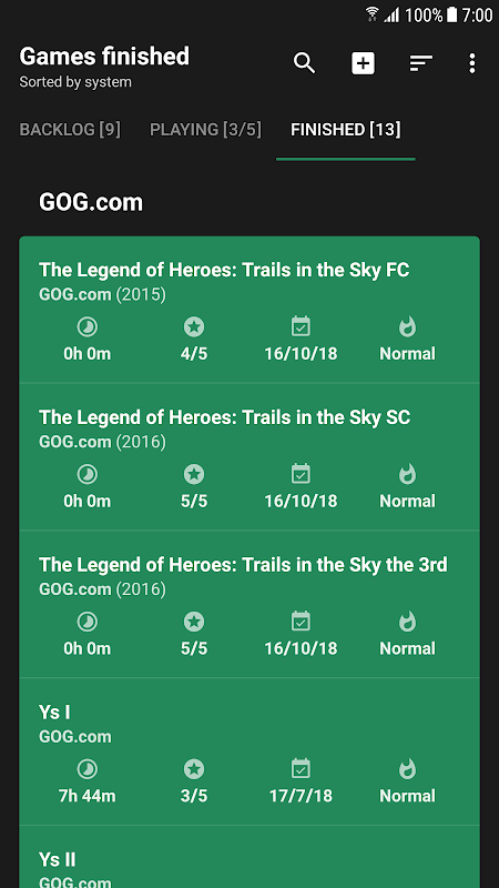 • Sort games by GOTY and favorites.