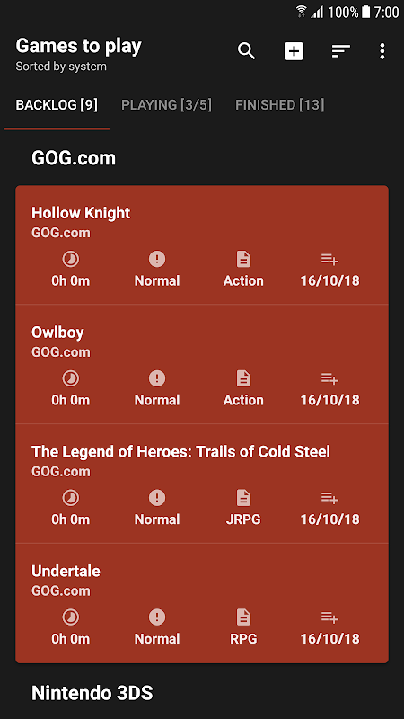 ビデオゲームのバックログを管理し、進行状況を更新します。