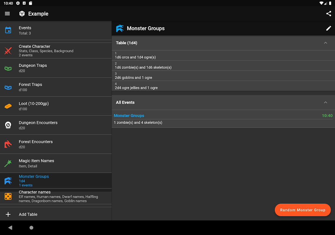 DnD の参照テーブルとランダム アイテム生成を備えたゲーム マスター ヘルパー