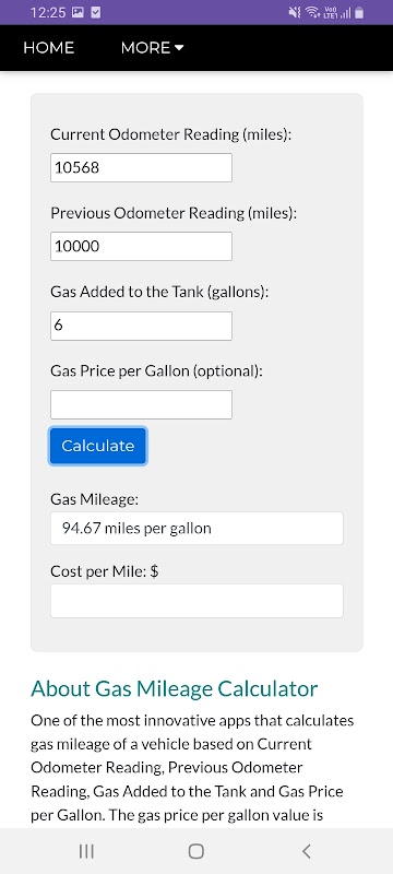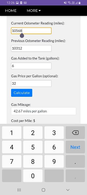 テキストエリア内にすべてのデータを挿入し、計算ボタンをタップすると、この燃費計算ツールはガロンあたりの正確なマイル数を返します。ガロンあたりのマイル数に加えて、マイルあたりのコストの値も表示されます。