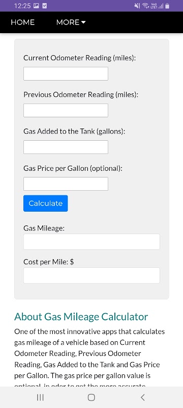 この未来的なアプリを使用すると、燃費の計算が簡単かつシンプルになります。このアプリは、走行距離計の読み取り値をガロンで受け取り、答えをガロンあたりのマイル単位で返します。