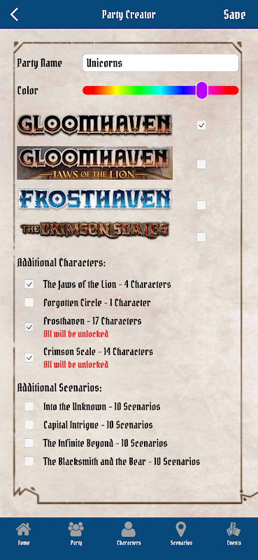 キャンペーンごとにパーティーを作成し、キャンペーン中にそのパラメーターを管理できます。