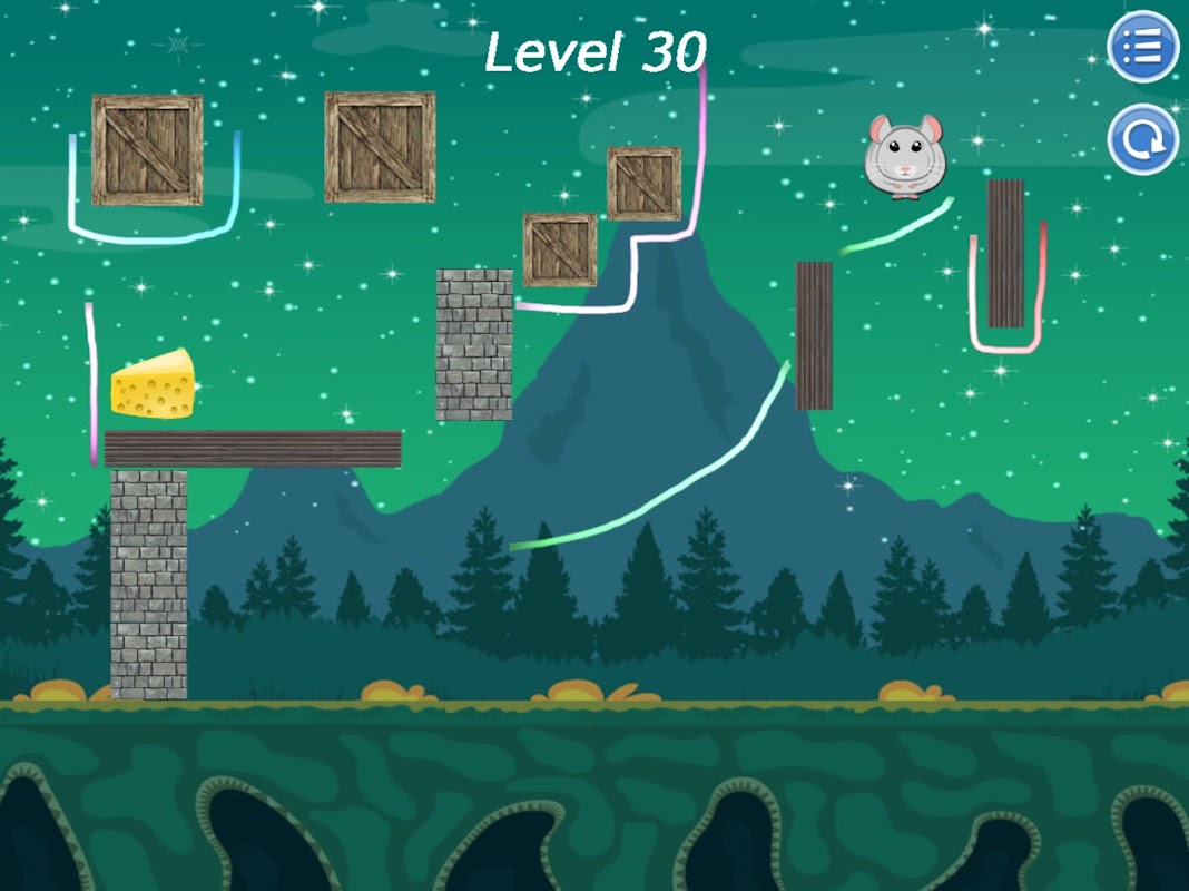 画面に線を描いて、元気いっぱいの天才ネズミがチーズをゲットできるよう手伝ってあげましょう。楽しいパズルゲームです。