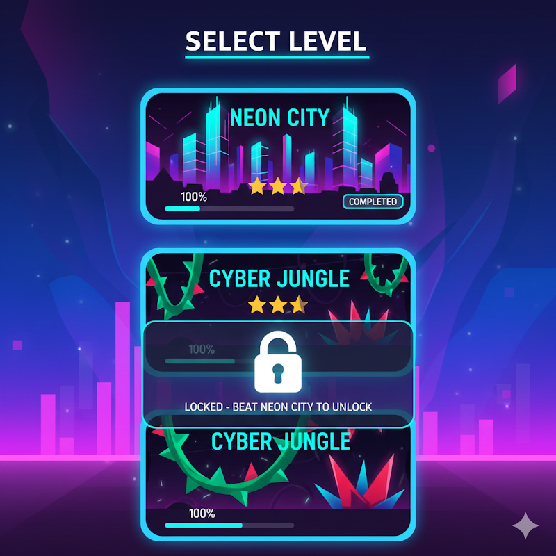 このハイテンポなリズムプラットフォームゲームで、反射神経を試そう。難関レベルをクリアし、幾何学的な障害物を回避し、リズムに合わせてノリノリで駆け抜けろ。ジャンプ、飛行、宙返りを駆使して危険な通路を駆け抜け、スキルを限界まで試せ。