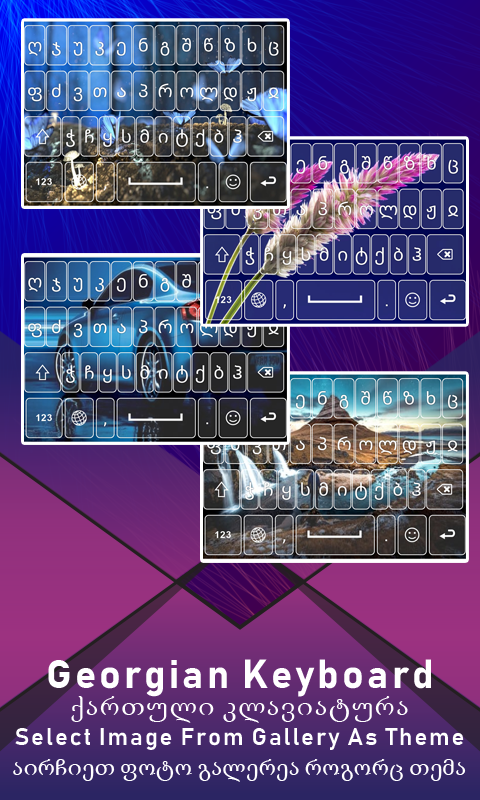 Let's design your simple mobile keyboard layout with the Georgian themes keyboard. We are pleased to provide you with a Georgian language keyboard and typing in Georgian language. If you are adapting trending Georgian typing keyboard for your keyboard background, then the Georgian English is the design keyboard with Georgian typing app.
