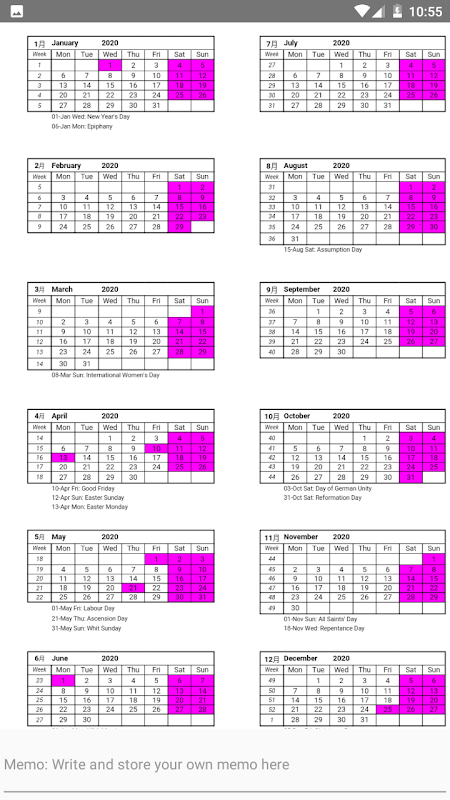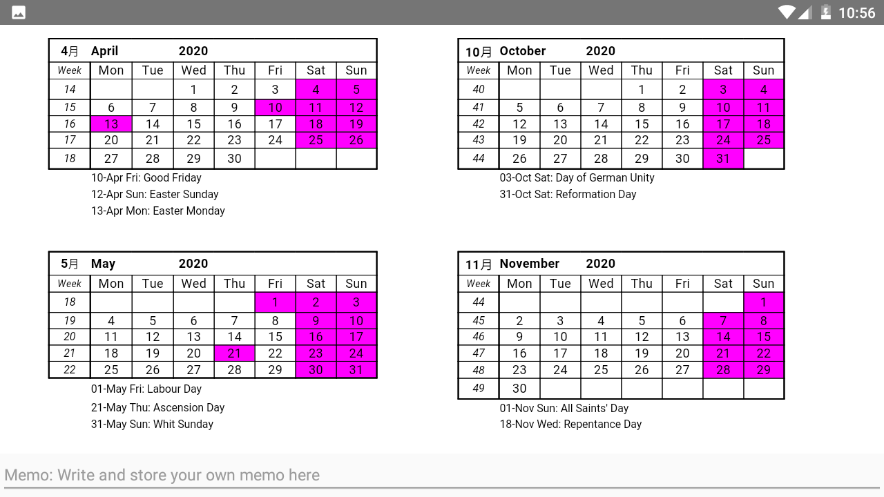 GERMANY HOLIDAY CALENDAR 2020 ドイツ休日 德国节日 APK 情報