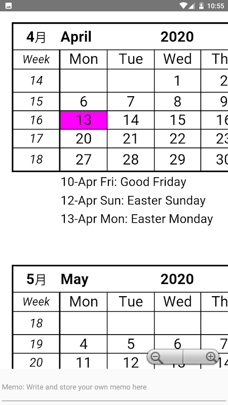 Simple GERMANY HOLIDAY CALENDAR 2020 ドイツ休日 德国节日 Offline with Zoom In/Out
