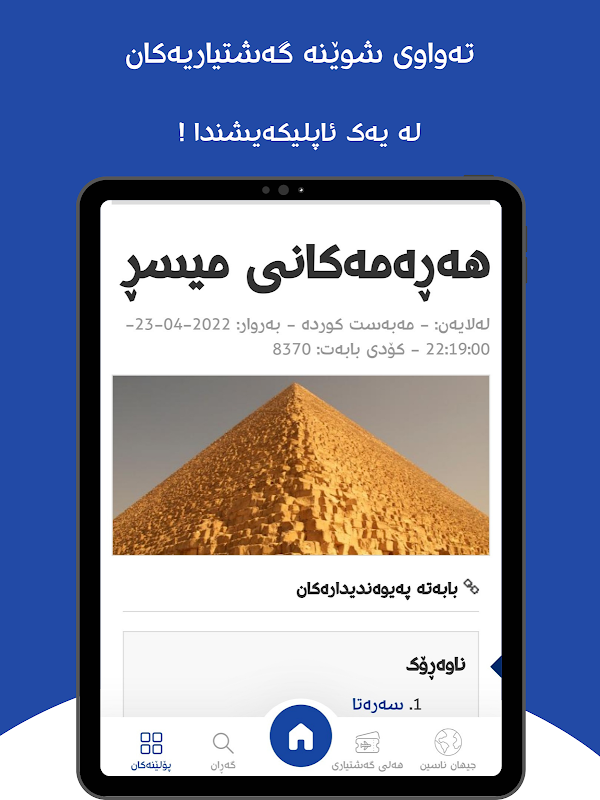 بەخێربێن بۆ پلاتفۆرمی گەشتیار، پلاتفرۆمی گەشتیار ناوەندێکی یەک وێستگەیە بۆ هەموو और देखें پلاتفۆرمی گەشتیاریە بە زمانی کوردی ، کاردەکات بۆ پەردەلادان لەسەر سەرسوڕهێنەرە گەش और देखें認証済みبۆ گەشتێکی نایاب گەشتیار هەڵبژێرە。