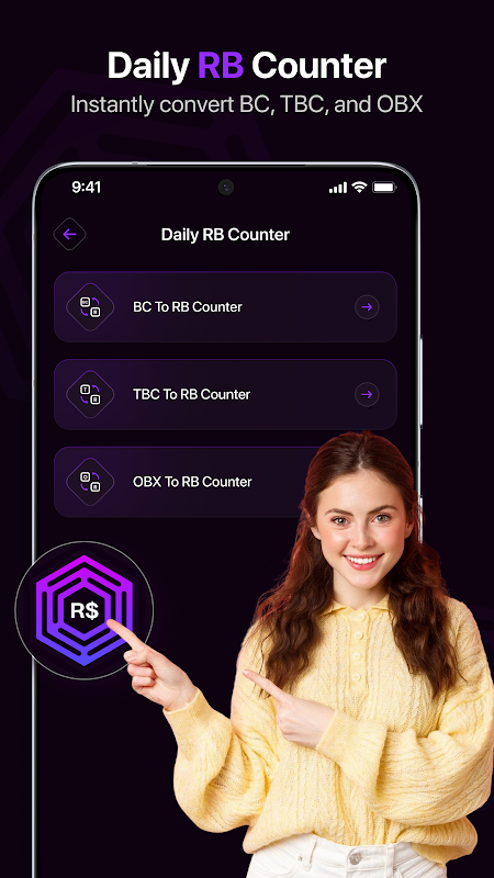これは非公式アプリであり、OFFICIAL CORPORATIONとは一切関係ありません。ファンやプレイヤーが無料でRobuxを毎日計算およびRBXコンバーターとして利用できる機能のみを備えており、Robuxを無料で獲得する機能はありません。このアプリはハックやチートではありません。フェアプレイの推進に尽力しています。