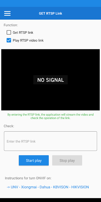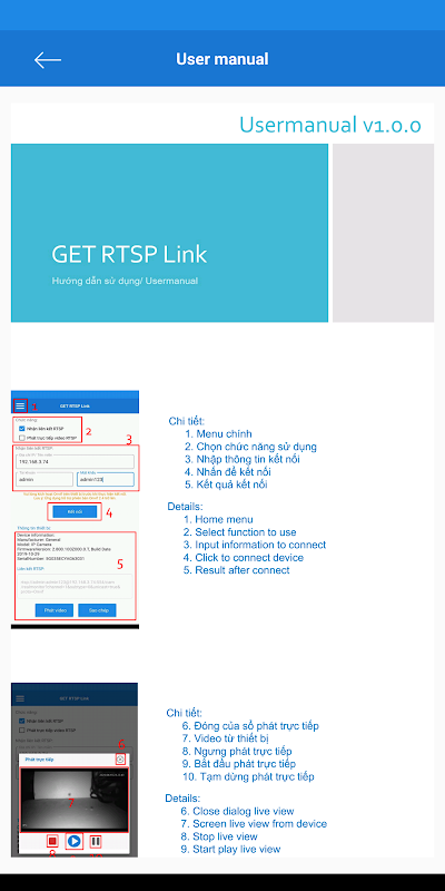 ** Lưu ý: Ứng dụng chỉ trích xuất được link RTSP với những thiết bị hỗ trợ giao diện WEB.