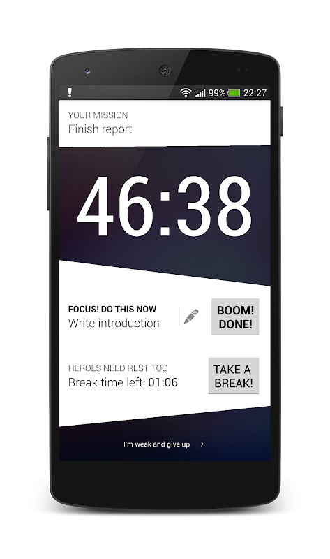 * Added different types of modes and options. Now you can choose to be able to pause the timer for more urgent matters, add overtime in the last five minutes of your mission or completely drop the breaks. Choose the best method for different types of tasks! YAY!
