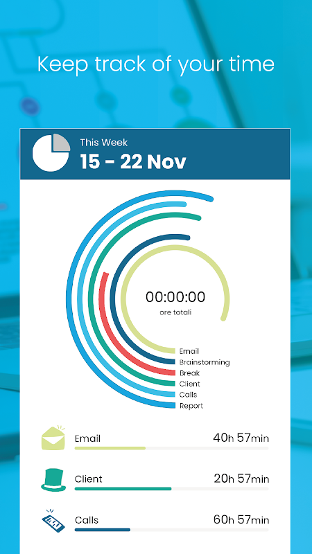 過去1、2週間の活動をチェックしてみませんか?このアプリを使用すると、タスクの履歴を簡単に確認できます。読みやすい色分けされた日次、週次、月次のグラフを作成するため、1年間に各タスクに費やした時間を確認できます。