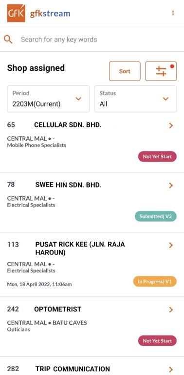 現地のフィールド監査人向けに設計された GfK Stream Mobile 監査ツールを使用すると、内外のフィールド監査人が外出先でスマートフォンやタブレットを使用して小売業者の販売データを簡単に取得および記録でき、オンライン モードとオフライン モードの両方をサポートします。現場の監査人は、割り当てられた店舗リストの概要をすぐに見つけて、店舗にアクセスし、小売業者の販売データを簡単に追跡および確認できます。